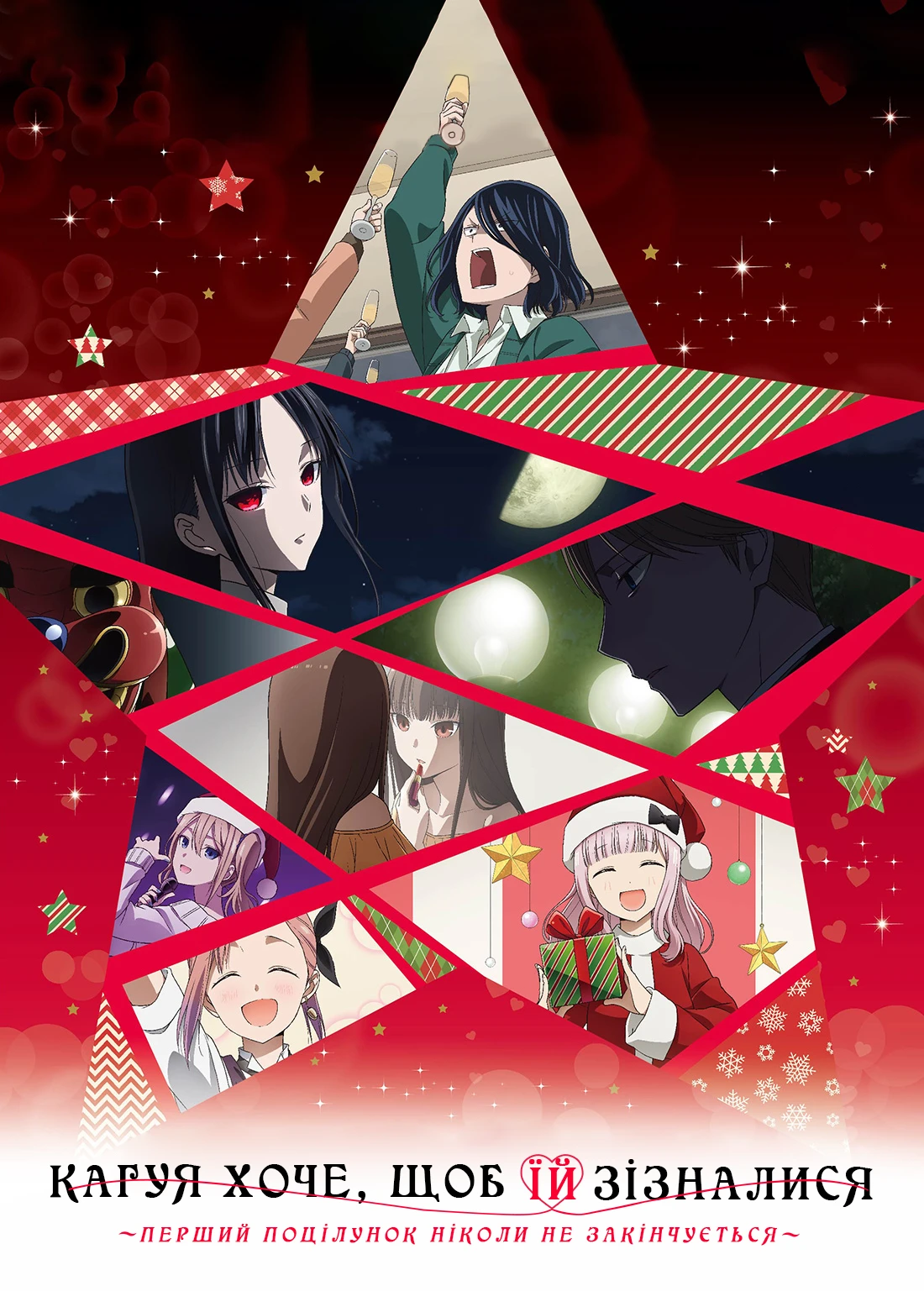 Відчуття невизначеності у стосунках Шіномії Каґуї та Шіроґане Міюкі стає справжнім випробуванням у "Каґуя хоче, щоб їй зізналися: Перший поцілунок ніколи не закінчується". Після того, як їхній перший поцілунок наділив їх новими почуттями, виникає запитання: чи можуть вони бути справжньою парою? Ця романтична комедія вражає не лише дотепним гумором, а й глибокими емоціями, що пронизують серце. Різдвяний сезон стає ідеальним фоном для розвитку їхніх стосунків, адже любов та краса моментів затоплюють кожну сцену. Унікальне поєднання комедії і драми розкриває теми любові та романтики через призму молодіжних переживань. Фанати аніме та романтичних історій обов'язково оцінять цю стрічку, адже вона викликає усмішки і сльози водночас. "Кагуя хоче, щоб їй зізналися: Перший поцілунок ніколи не закінчується" — це не просто фільм, а справжня подорож у світ почуттів, яка порадує усіх у 2023 році.